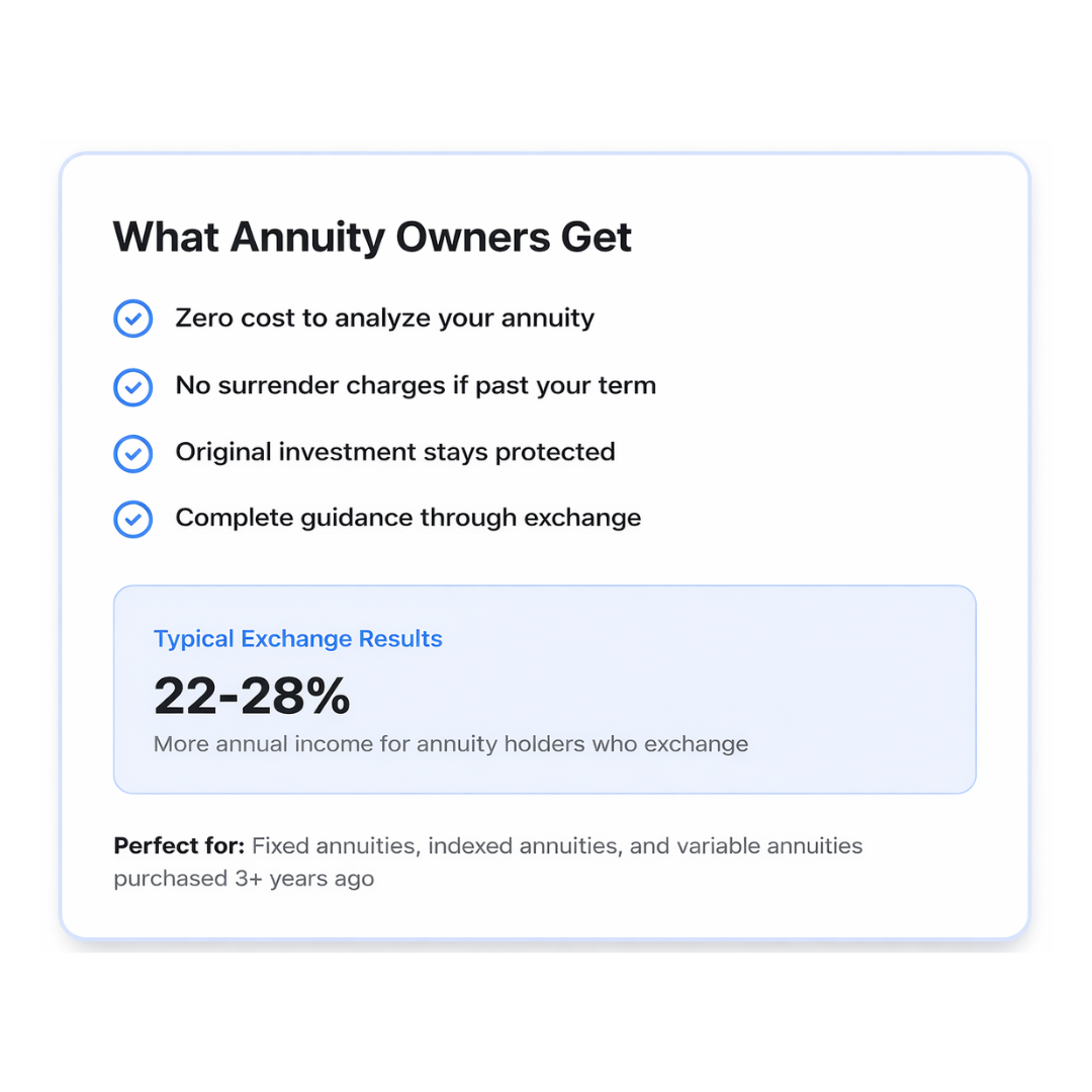 We analyze your existing annuity against today's best products. You'll see exactly how much more income you could receive with an exchange.